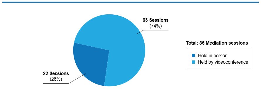 While the Tribunal had previously held remote mediations in particular circumstances, since March 2020, it has only held mediations by videoconference. Despite the changes in procedures, both Tribunal members and Secretariat personnel ensured that proceedings remained accessible and fair. Assistance was provided to the parties, both through newly drafted guidelines and through hands-on orientation. These measures ensured that parties were equipped to participate virtually, and provided them with the opportunity to raise questions or concerns in advance of the videoconference proceedings.