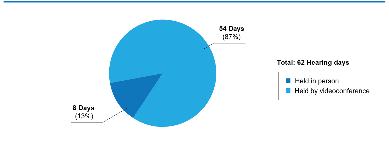 Given the impact of COVID-19 on its operations, the CHRT adapted its procedures and relied more on technology. The CHRT held its first virtual hearing in July 2020 by videoconference. The Tribunal also had to adapt some of its practices to respond to the new adjudication environment. For example, parties are now asked to submit all proposed hearing documents electronically, 45 days in advance, as opposed to providing paper copies on the first day of the hearing.