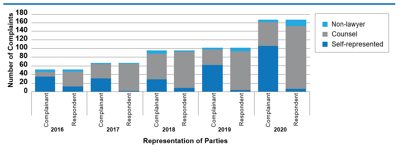 The Tribunal started the year 2020 with 269 active complaints. After closing 91 complaints and receiving a total of 167 new complaints referred to it by the CHRC, the Tribunal ended the year 2020 with 345 active complaints.
