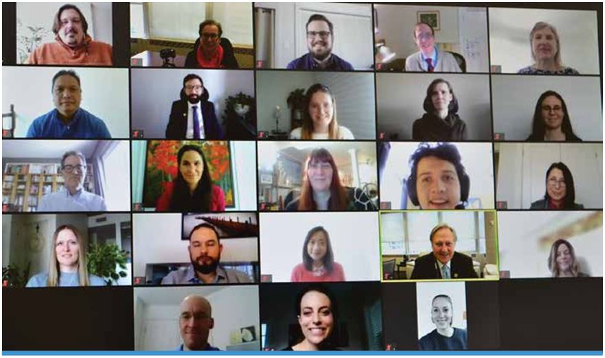 This photo is a screenshot of a typical meeting held with CHRT Secretariat and full-time Members. Videoconferencing is a vital element in the CHRT’s technological response to the COVID-19 pandemic, ensuring both effective internal operations and continuity of services to the Canadian public.